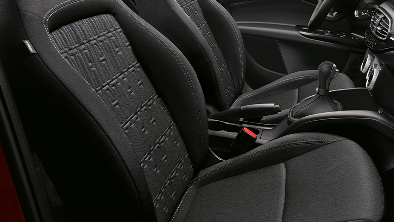 • Sièges en tissu noir recyclé avec monogramme FIAT